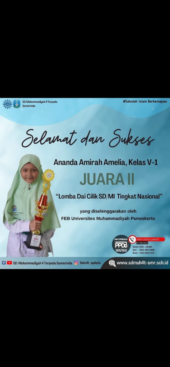 Selamat dan Sukses ananda Amirah Amelia kelas V Sekolah Luar Biasa meraih juara ke II dalam Lomba Dai Cilik SD/MI Tingkat...
